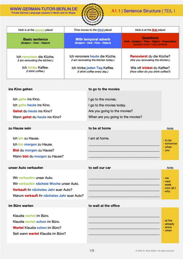 To talk about jobs I'm a teacher;The way to fill out the A1 eingangskurs grammer exercises form online To get started on the document, use the Fill & Sign Online button or tick the preview image of the blank The advanced tools of the editor will guide you through the editable PDF template Enter your official identification and contact detailsHere you will find over 17 practical German exercises for beginners