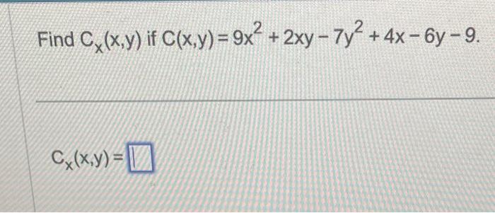 Solved Find C X X Y If C X Y 9 X 2 2 X Y 7 Chegg Com